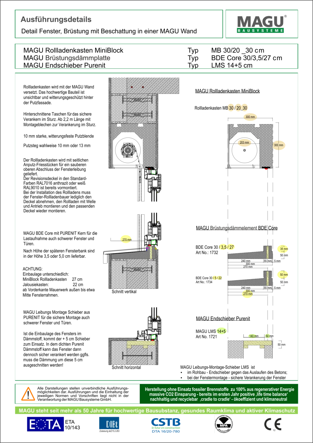 Das MAGU BDE Brüstungsdämmelement gibt es mit passenden Fensterbankanschlüsse für Aluminium oder Steinfensterbänke.