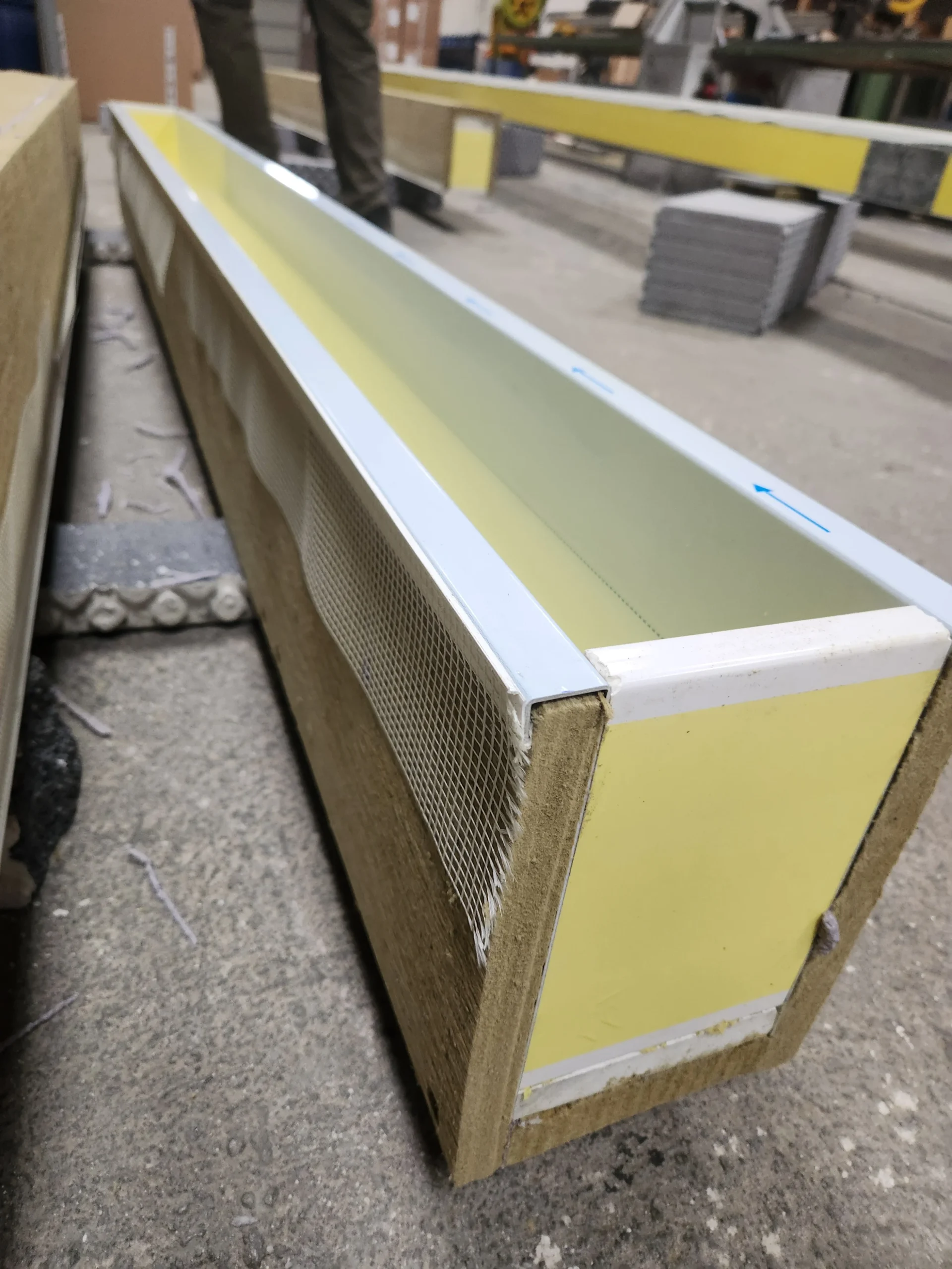 Schutzfolie der beiden unteren Kastenschenkel ist nach dem Verputzen und vor der Montage der Jalousie zu entfernen.