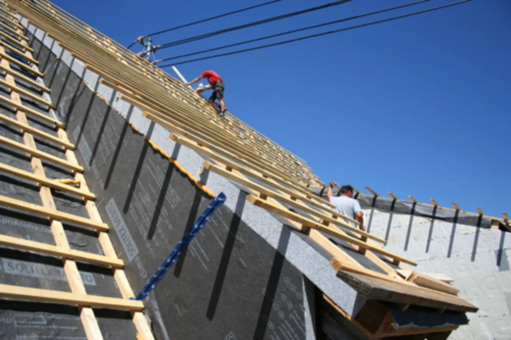 Auf den druckfesten MAGU ASD werden die Konterlattung verschraubt und die Dachlattung afgebracht.